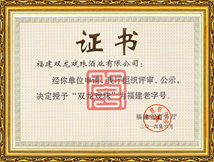 雙龍戲珠酒業作為福建省白酒研發中心,榮獲福建老字號產品、福建省農業產業化龍頭企業、福建東南窖酒文化館、科技小巨人領軍企業,國家守合同、重信用單位等榮譽。